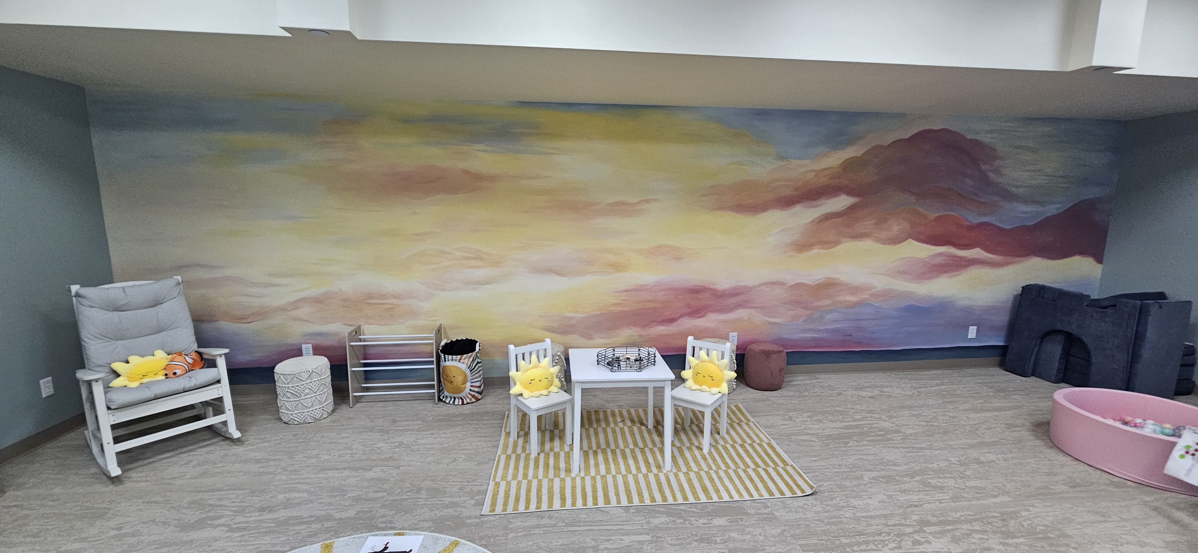 My love for art began early. Between sports and school, I always found a way to fit art or design into my schedule. Now, as motherhood allows, I try to carve out time for art—whether just at work in guiding our customers to decorate homes, or more recently through commissioned murals. I love helping others bring a vision to life— bring life to a empty space — for a home, a public space, a single wall, or a custom work.